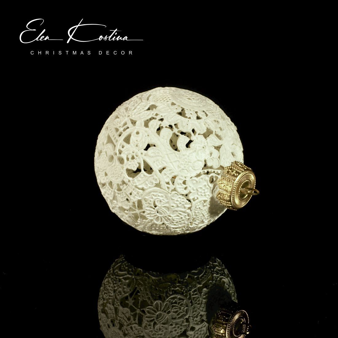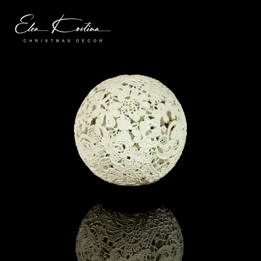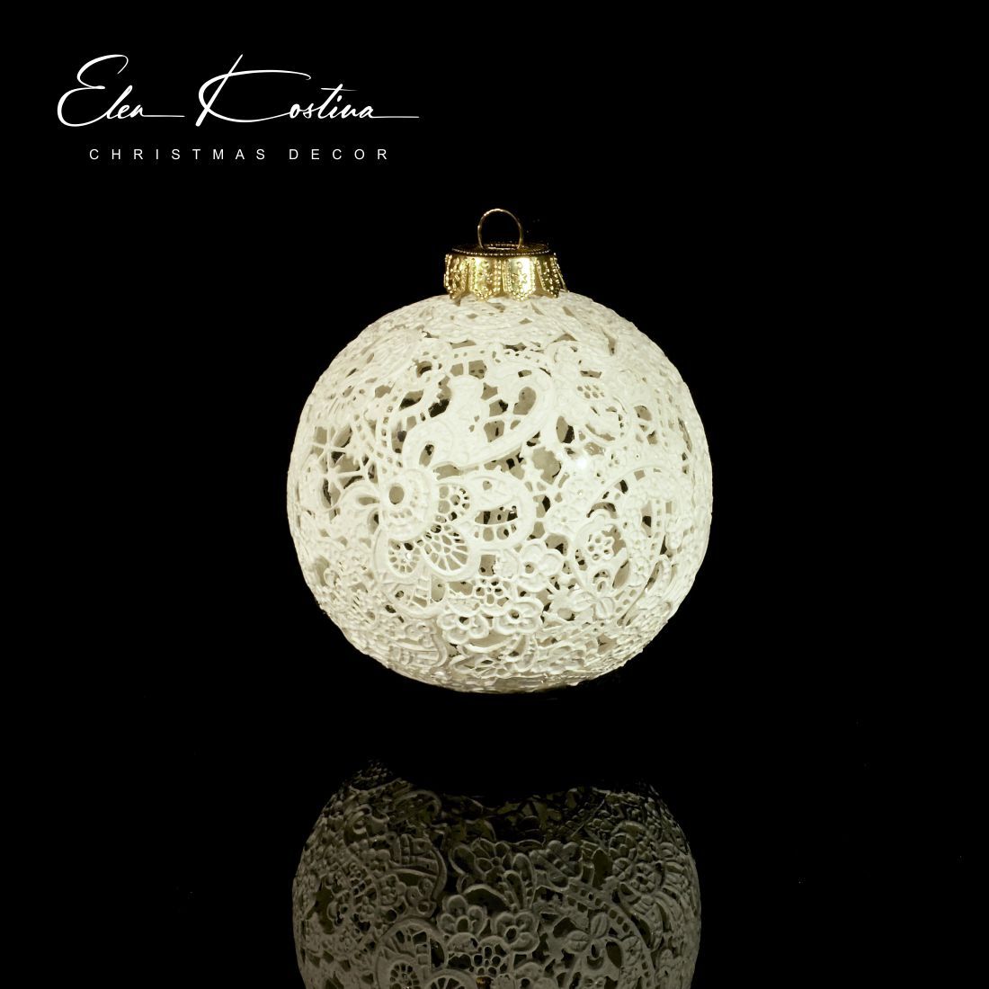 • Ручна робота • Матеріал основи - прозоре скло • Колір візерунку - білий матовий • Мотузочка для підвісу • Подарункова упаковка • Сертифікат автентичності • Вітальна листівка майстерині • Наявність у колекції кулі 80, 90 та 100 мм • Виготовлено в Україні